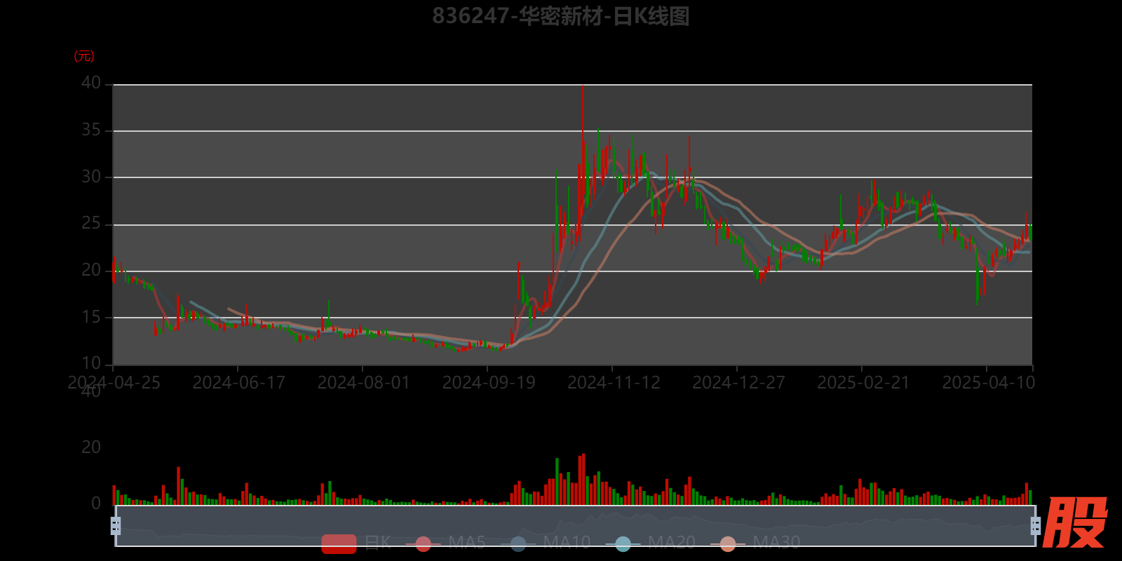 以4月25日收盘价计算,华密新材目前市盈率(TTM)约为75.94倍,市净率(LF)约6.15倍,市销率(TTM)约6.84倍。