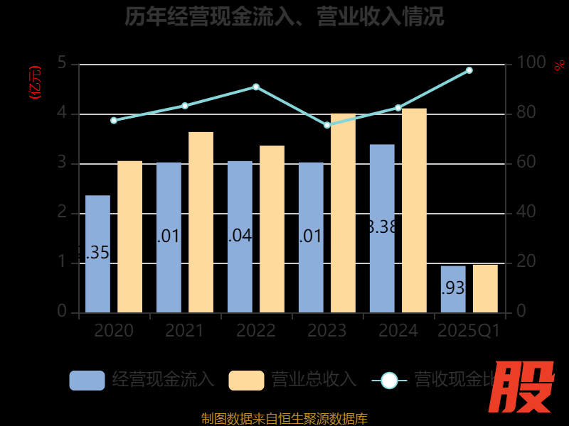 截至2025年一季度末,公司经营活动现金流净额为583.47万元,同比增长5.67%;筹资活动现金流净额4914.36万元,同比减少1077.58万元;投资活动现金流净额747.98万元,上年同期为-879.36万元。