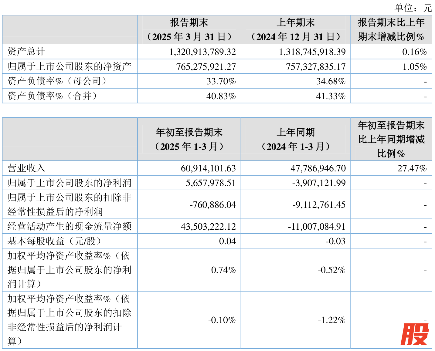 盈利能力方面, 2025年一季度公司加权平均净资产收益率为0.74%,同比上升1.26个百分点。公司2025年第一季度投入资本回报率为0.33%,较上年同期上升1.24个百分点。