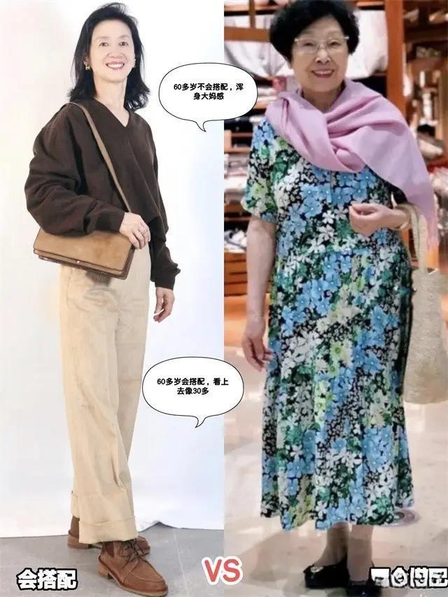 千万不要在老年的时候去选择不暗沉的衣服,觉得自己已经不年轻了,不敢尝试年轻时的一些纯色系大红色的衣服之类的单品,其实这样的想法是错误。