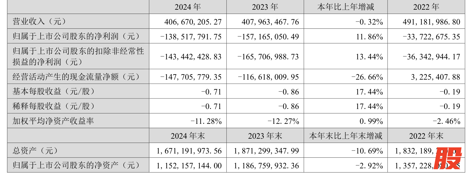 中证智能财讯吉大正元(003029)4月26日披露2024年年度报告。2024年,公司实现营业总收入4.07亿元,同比下降0.32%;归母净利润亏损1.39亿元,上年同期亏损1.57亿元;扣非净利润亏损1.43亿元,上年同期亏损1.66亿元;经营活动产生的现金流量净额为-1.48亿元,上年同期为-1.17亿元;报告期内,吉大正元基本每股收益为-0.71元,加权平均净资产收益率为-11.28%。