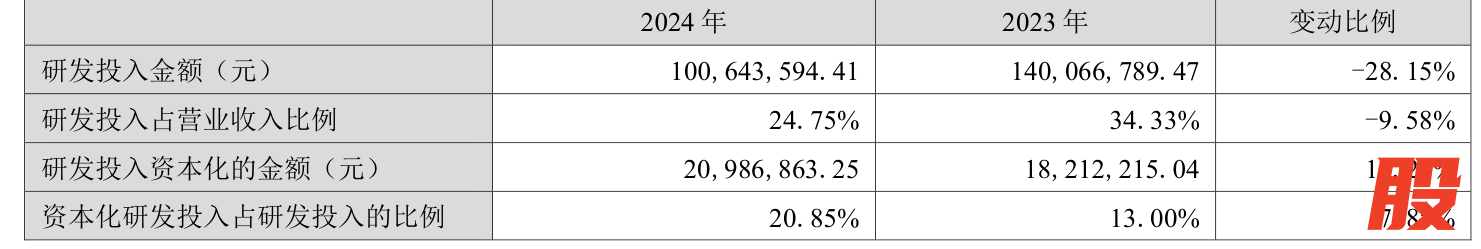 2024年全年永星速配,公司研发投入金额为1.01亿元,同比下降28.15%;研发投入占营业收入比例为24.75%,相比上年同期下降9.58个百分点。此外,公司全年研发投入资本化率为20.85%。
